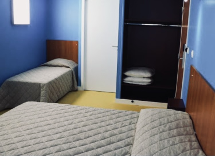 La chambre triple avec salle de bain privée (WC et douche) est situés au premier étage et peut être aménagée avec un lit double et un lit simple ou trois lits simples.
